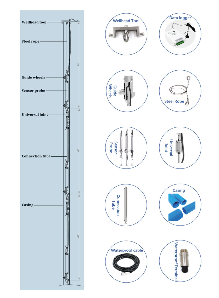 The sensor probe of it has a maximum measuring range of ± 30 degrees. It is suitable for geological monitoring, construction, civil engineering and other similar safety monitoring application.