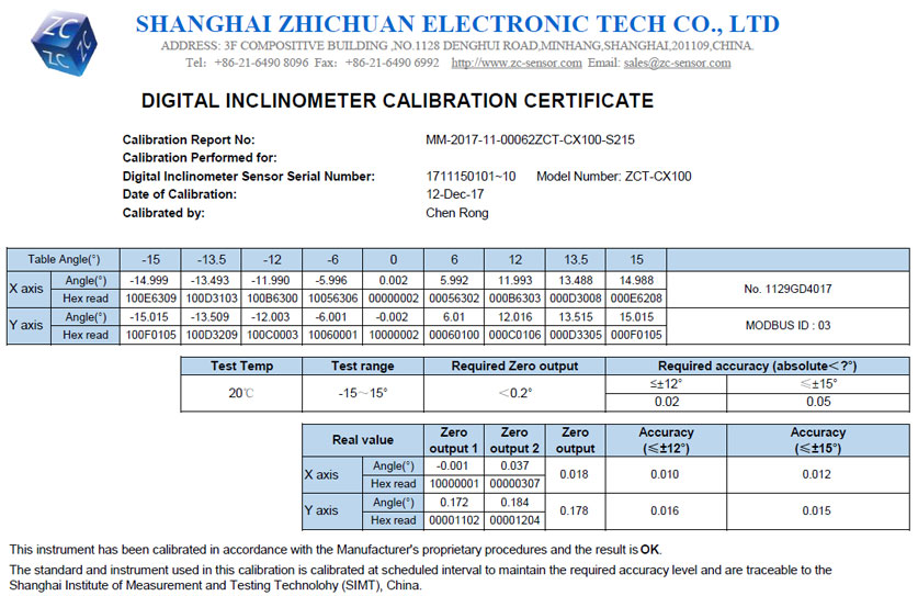 Our in-place inclinometer accuracy reaches 0.01 degree. We have tilt angle platform with accuracy 0.003 degree to calibrate our inclinometer. Ensure each product satisfy the accuracy in specification.